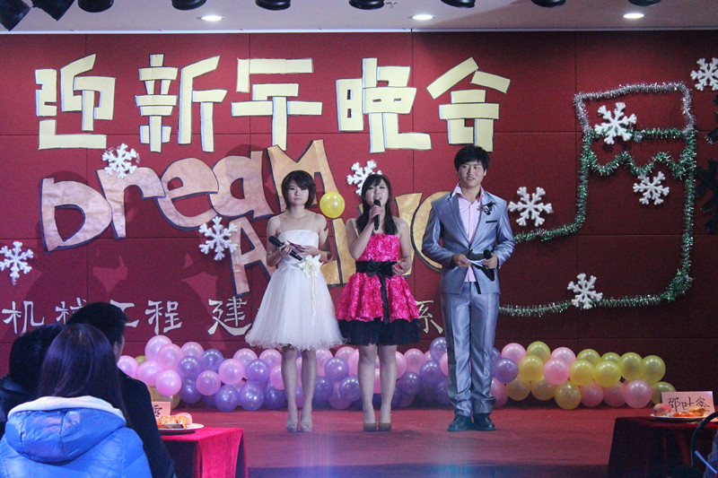 机械工程建筑与艺术系于2012年12月25号晚6:00在多功能厅举行了以“末日狂欢——Dream Alive”为主题的迎新年晚会。建筑与艺术系学办主任邵叶鑫老师、机械工程综合办主任严红霞老师、我系庄桂山、邓蓉蓉、王洪高、王守攻、程兴、袁兴博等老师共同参与了这次晚会。