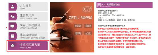 2019年下半年英语四、六级考试将于12月14日进行,请各位考生自即日起,登录全国大学英语四、六级考试网站打印准考证。