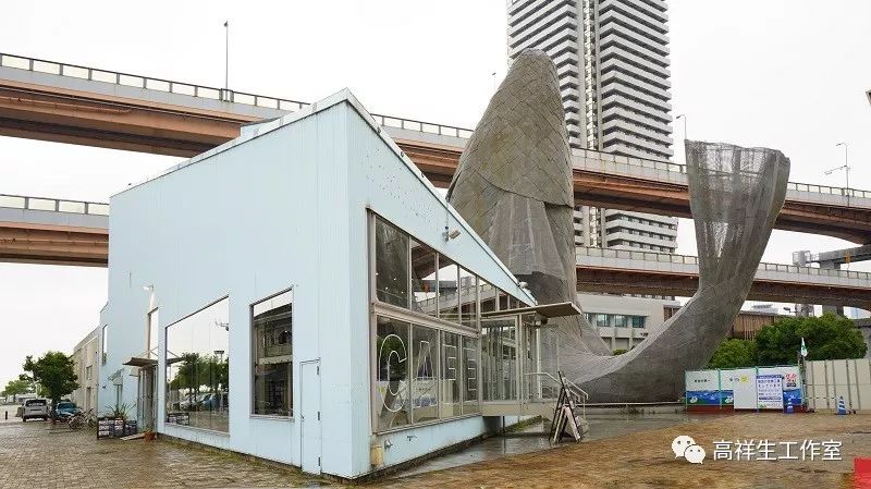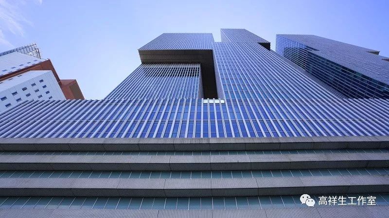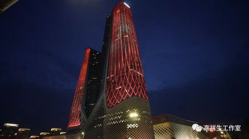 建筑的形态是不规则形体的组合,建筑的外立面就像蒙着一张硕大的花蛇皮。