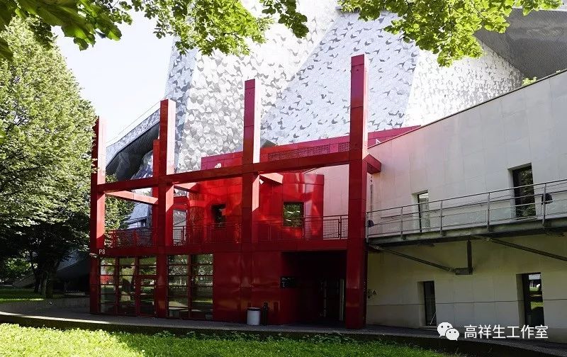伯纳德·屈米在解构主义设计师中扮演很重要的角色,他对解构主义的形成起过推动作用。我对屈米的作品看得很少,只是在法国拉维莱特公园中看到屈米设计的一个大红色的构筑物,体量不大,但很显眼,不像建筑,很像装置,整体看就像在公园中放置了一个红色的金属构筑物。