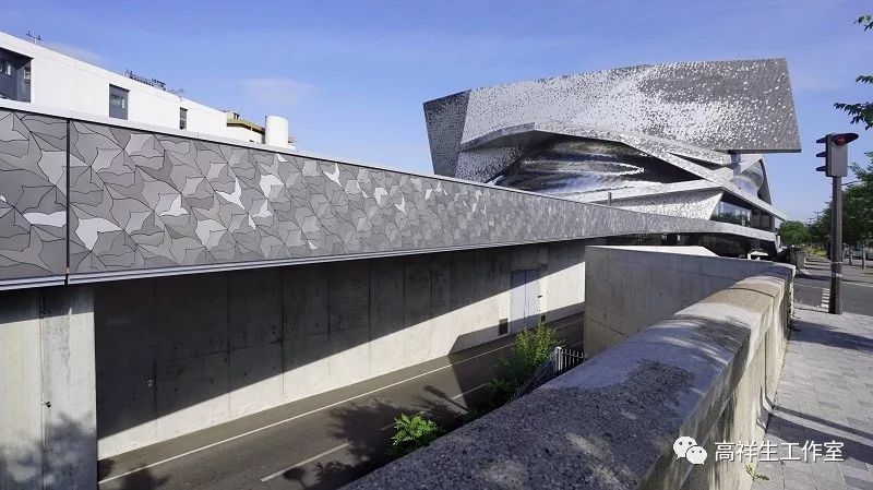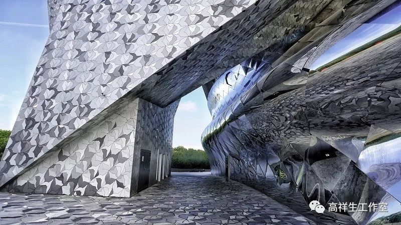 让·努维尔的设计我看的不多,但我对他在法国巴黎的拉维莱特爱乐厅印象很深,巨大建筑的外立面布满了大小不一的椭圆形肌理,像贴了两张巨大的“蛇皮”。这幢建筑从空间形态到立面造型都充分体现了让·努维尔的艺术观点。