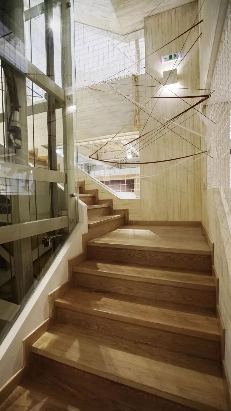 既无观赏性又无使用功能的物品经过艺术加工或精心布置后就可以成为富有形式感的陈设设计作品,譬如有些装置艺术。如图 1.3.4 中酒店的楼梯口学习波普艺术的做法使用绳索等做成的织网装置。