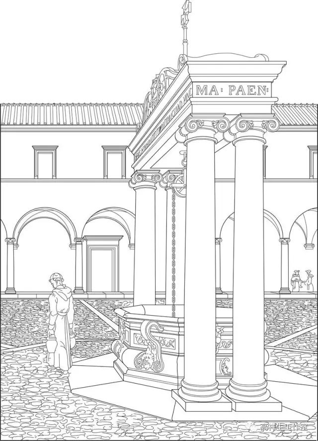 注:本短文中的插图由我工作室的助手、员工根据法国巴黎美术公司成立一百周年时该校师生对西方古典建筑中的精品测绘后画的渲染图重新绘制成线图。绘制工作由我负责选稿、校正尺寸、改稿、定稿、编辑。CAD绘图由郭峰桦、毕冬梅、沈小东、万钟、王成、季建乐、徐静等完成。