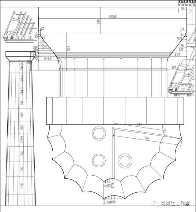 图28古罗马混合柱。该图由高祥生工作室根据法国巴黎美术公司成立一百周年之际时该校师生测绘后复原的渲染图重新以CAD形式绘制