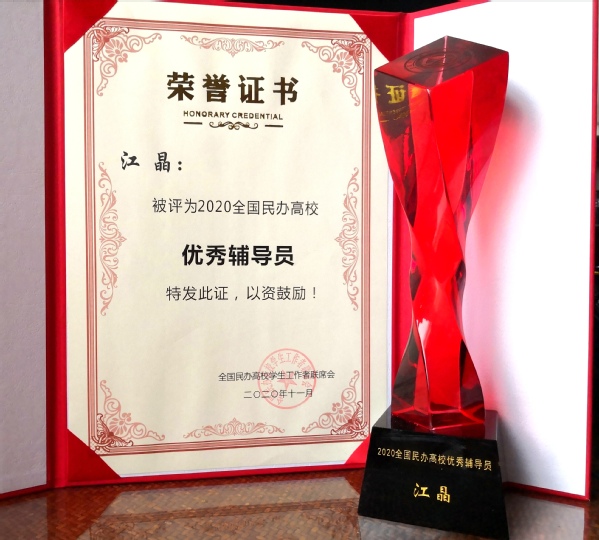 为贯彻全国教育大会精神,按照“有理想信念、有道德情操、有扎实学识、有仁爱之心”的四有标准,树立典型,表彰先进,提升民办高校辅导员职业荣誉感,全国民办高校员工工作者联席会举办了第五届(2020)全国民办高校优秀辅导员评选活动。公司太阳成tyc7111cc集团辅导员江晶荣获2020年“全国民办高校优秀辅导员”荣誉称号。