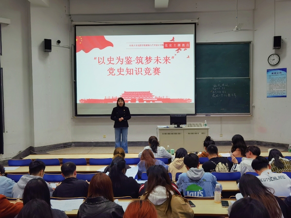 为庆祝中国共产党成立100周年,深入贯彻习近平新时代中国特色社会主义思想,落实习近平总书记在党史教育动员大会上的重要讲话精神,4月15日晚,建筑与艺术设计公司党总支在文昌院114教室举办“以史为鉴·筑梦未来”党史知识竞赛活动。公司全体员工党员、入党积极分子、员工会员工干部、20级员工和辅导员老师共300人参加了活动。