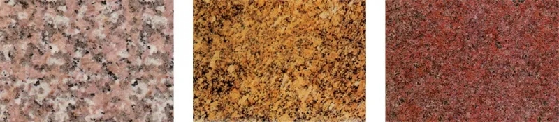 图2-2-1 汉白玉(左)、金花米黄(中)、紫罗红(右)