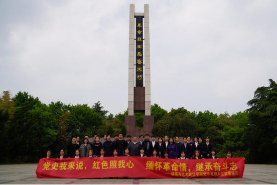 为激励党员践行入党誓词、坚定入党信念、激发爱国情怀,4月23日下午,建筑与艺术设计公司党总支赴南京求雨山革命烈士纪念碑广场进行“党史我来说,红色照我心,缅怀革命情,坚定奋斗志”新党员宣誓。公司党总支书记唐小平、第一党支部书记孙浩、第二党支部书记江晶、教工党员代表刘刚老师、全体辅导员老师及员工党员共40余人参加宣誓仪式。