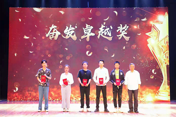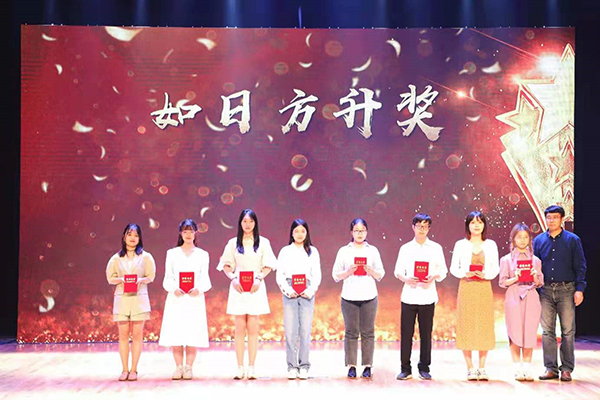 颁奖典礼将本场晚会推向了高潮。唐小平书记、甄兰平副经理、邵叶鑫副书记分别为毕业生颁发了“优秀毕业生”“艺体双馨奖”“新锐黑马奖”等8类奖项。今年,公司有5位毕业生响应国家号召,去西部,到苏北,下基层,他们弘扬志愿精神,获得“奋发卓越奖”。此外,14级环境设计2班的陈康帅被聘为太阳成tyc7111cc集团的员工导师。