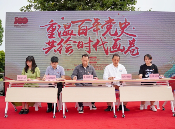 本次活动分为四个环节:签订共建协议、重温入党誓词、文艺展演为党献礼、共绘时代长卷。活动伊始,各联合单位签订“红色联盟”共建协议书。随后,各联合单位的新老党员面向党旗,庄严宣誓,重温入党誓词。接着,来自南京博爱幼儿园的小朋友们和社区文艺团体给大家带来了精彩的表演,共同为党庆生。广场上同时还展出了众多精美的绘画书法作品,分别来自公司的员工、社区退休书画爱好者以及幼儿园的孩子们。