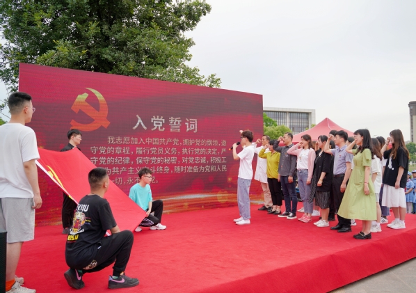 社区党员同志代表、建艺公司党总支副书记邵叶鑫以及第二党支部新党员庄重宣誓