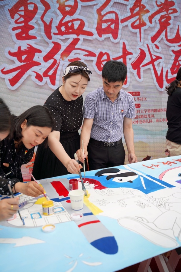 本次活动分为四个环节:签订共建协议、重温入党誓词、文艺展演为党献礼、共绘时代长卷。活动伊始,各联合单位签订“红色联盟”共建协议书。随后,各联合单位的新老党员面向党旗,庄严宣誓,重温入党誓词。接着,来自南京博爱幼儿园的小朋友们和社区文艺团体给大家带来了精彩的表演,共同为党庆生。广场上同时还展出了众多精美的绘画书法作品,分别来自公司的员工、社区退休书画爱好者以及幼儿园的孩子们。