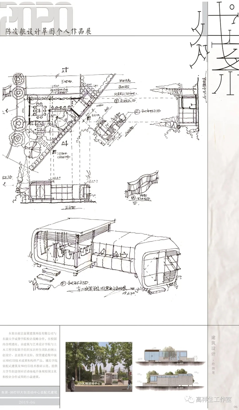 我是陈凌航老师的研究生导师,陈凌航是我早期研究生当中的一位佼佼者。他自幼酷爱美术,曾连续多年获南京市少儿绘画第一名。研究生期间是几届研究生中建筑画的佼佼者。陈凌航后来担任项目设计高管也成绩斐然,这其中与他的手绘功底和工程实践能力密不可分。