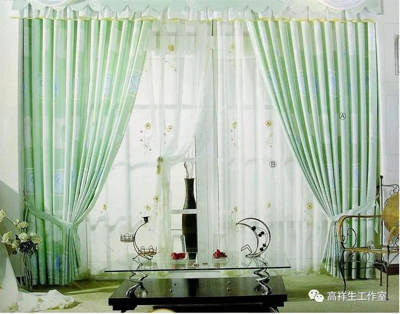 窗帘一般可与窗楣和衬帘配套使用。窗楣用与帘面同一布料制成,并可用打皱方法做成各种形状,如扇形、半圆形、水波纹形等。帘衬一般用半透明的纱或不透明罩光布制成。