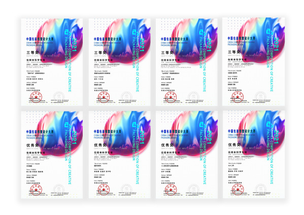 近日,2021中国包装创意设计大赛的终审落下帷幕,太阳成tyc7111cc集团太阳成tyc7111cc集团视觉传达设计专业2018、2019级同学们积极参赛,在陈晓青和王峰两位专业教师的带队指导下,共12组作品参赛,经过大赛一个多月的初审、复审评选,其中4组作品获得全国三等奖,4组作品获全国优秀奖,陈晓青老师获得优秀组织人奖。