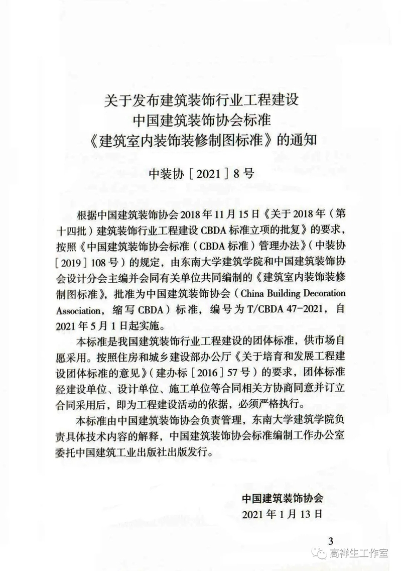 根据中国建筑装饰协会《建筑装饰行业工程建设CBDA标准立项的批复》的要求,由东南大学建筑公司和中国建筑装饰协会设计分会主编并会同三十个单位,三十余位设计师共同编制的《建筑室内装饰装修制图标准》已发布,请设计师朋友们关注。