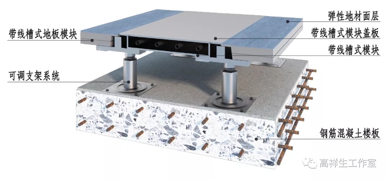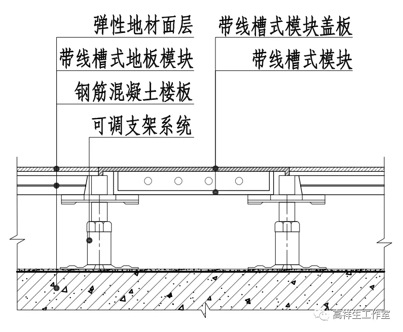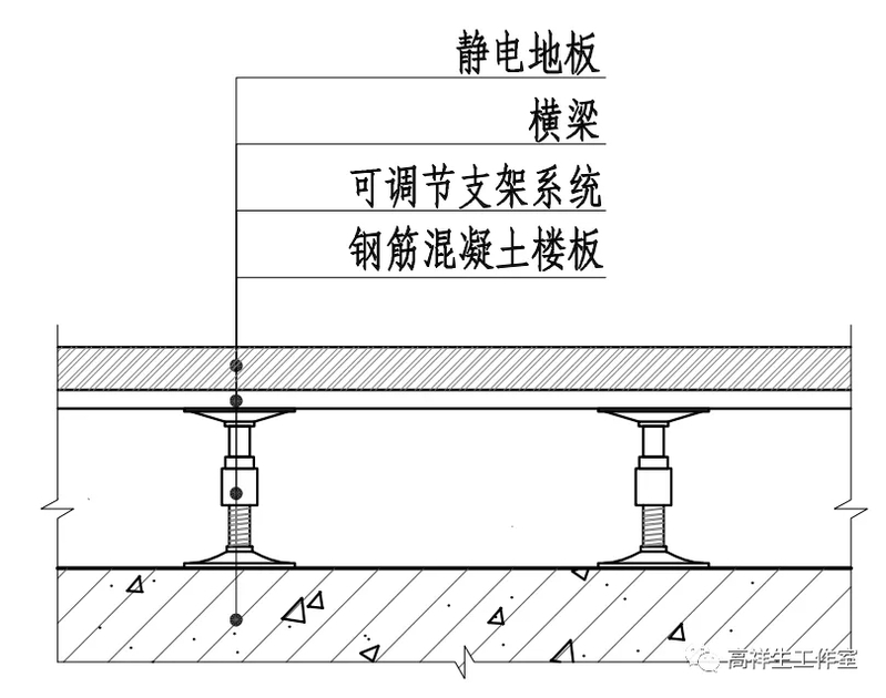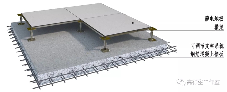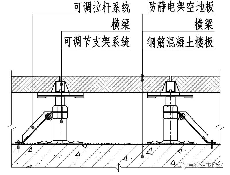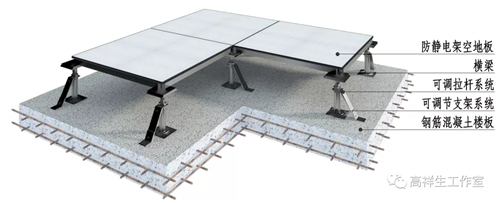 图 12-4-38 架空防静电地板地面(二)三维图(可调节拉杆)