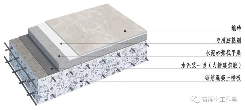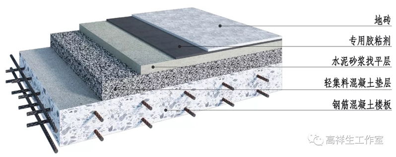 图 12-2-5 轻集料垫层地砖地面三维图(专用胶粘剂)