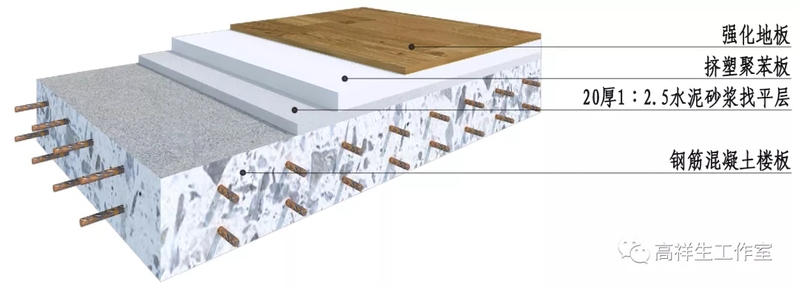 图 12-4-14 平铺强化地板地面三维图(挤塑聚苯板)