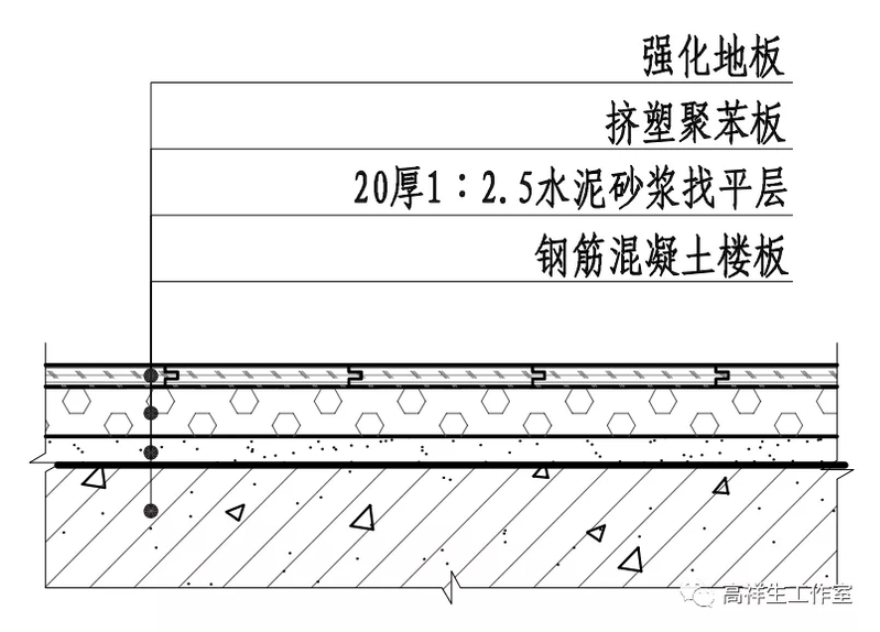 图 12-4-16 平铺强化地板地面构造节点图(挤塑聚苯板)