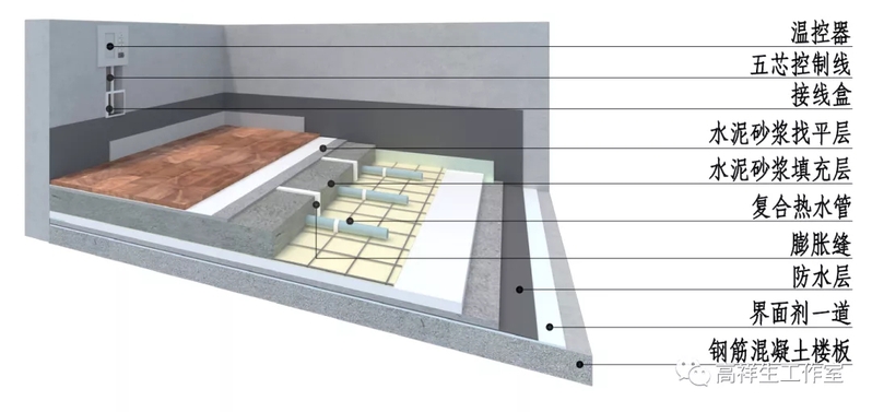 图 12-9-7 复合地板水暖地面构造节点图(发泡水泥绝热层)