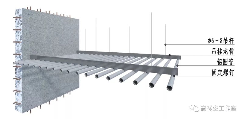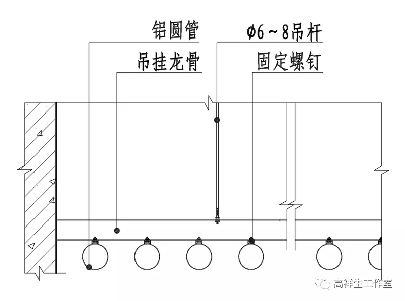 图 13-3-15 铝圆管顶棚构造节点图