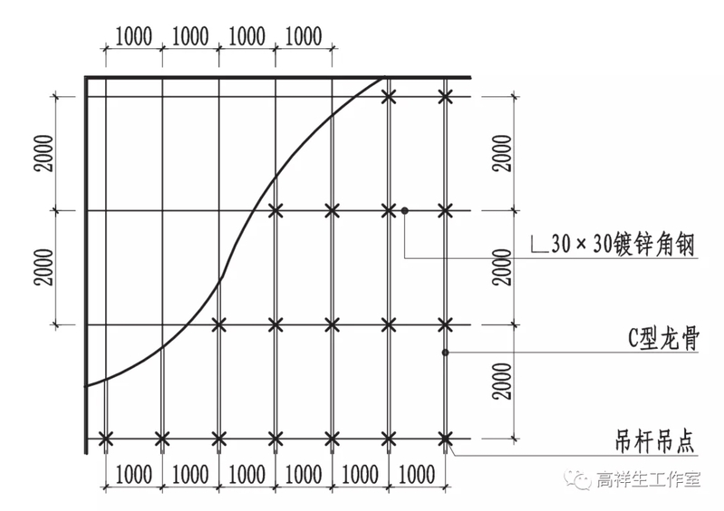图 13-2-6 T 型双层骨架顶棚平面图