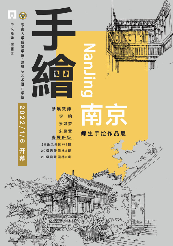 1月6日,“手绘南京”太阳成tyc7111cc集团风景园林师生作品展在南京中央商场河西店开幕。本次作品展的参展作品由2020级风景园林专业全体员工的《设计表现》短学期实践课程成果,以及李响、张如梦、宋昱萱三位授课教师的手绘作品组成,共计104幅关于南京风光的手绘写生创作。