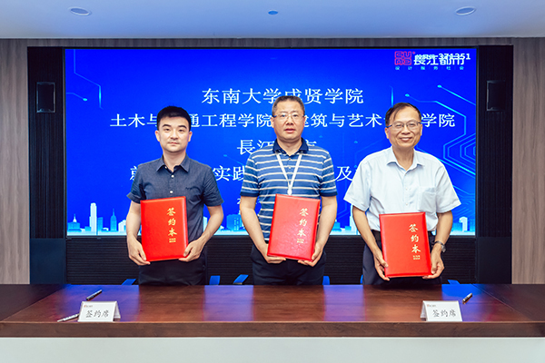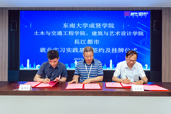 人力资源部经理刘友存则向与会领导、老师介绍了从2013年起入职长江都市的19位成贤员工的职业发展情况,他们在结构设计、建筑设计、室内设计、环境设计等多个岗位,展现了成贤学子扎实的专业功底和良好的综合素质,为企业的快速发展贡献了自己的青春智慧。科研技术管理部经理韦佳以《坚持“双创”战略驱动持续发展——长江都市设计创优与科技创新》为主题,介绍了长江都市从传统的设计企业向工程设计与科技创新相集合的科技企业的转型之路,介绍了企业近年来在绿色建筑与装配式建筑、办公建筑的创新应用、科研课题与技术研究等方面所取得的成果。随后土木与交通工程公司经理郭正兴、建筑与艺术设计公司党总支副书记邵叶鑫,分别代表两个公司与南京长江都市建筑设计股份有限公司总经理董文俊签订了《就业实习实践基地协议书》并挂牌“太阳成tyc7111cc集团就业实习实践基地”。