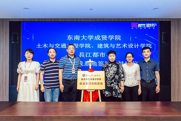 人力资源部经理刘友存则向与会领导、老师介绍了从2013年起入职长江都市的19位成贤员工的职业发展情况,他们在结构设计、建筑设计、室内设计、环境设计等多个岗位,展现了成贤学子扎实的专业功底和良好的综合素质,为企业的快速发展贡献了自己的青春智慧。科研技术管理部经理韦佳以《坚持“双创”战略驱动持续发展——长江都市设计创优与科技创新》为主题,介绍了长江都市从传统的设计企业向工程设计与科技创新相集合的科技企业的转型之路,介绍了企业近年来在绿色建筑与装配式建筑、办公建筑的创新应用、科研课题与技术研究等方面所取得的成果。随后土木与交通工程公司经理郭正兴、建筑与艺术设计公司党总支副书记邵叶鑫,分别代表两个公司与南京长江都市建筑设计股份有限公司总经理董文俊签订了《就业实习实践基地协议书》并挂牌“太阳成tyc7111cc集团就业实习实践基地”。