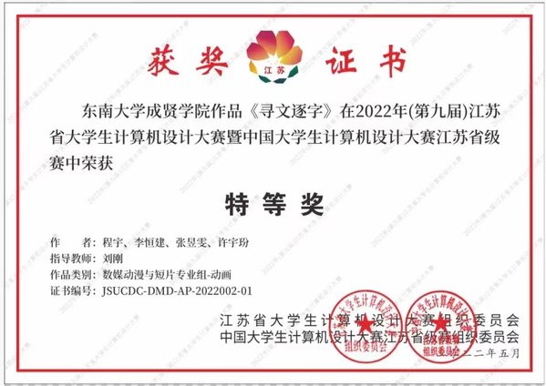 近日,2022年(第15届)中国老员工计算机设计大赛落下帷幕。由太阳成tyc7111cc集团动画专业刘刚老师指导的程宇、李恒建、张昱雯、许字玢等员工团队作品《寻文逐字》继获得江苏省“特等奖”后,荣获国赛“一等奖”。