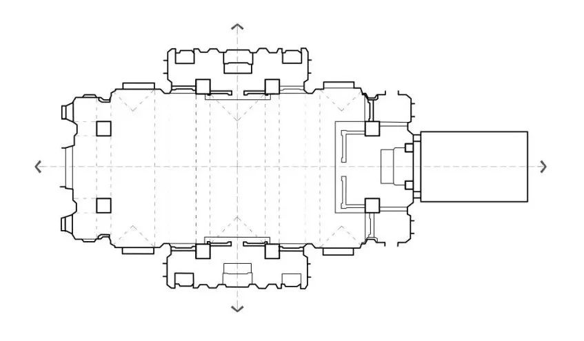 卡普拉罗拉的圣特雷莎教堂平面 表示长方形平面向前后、左右的扩张