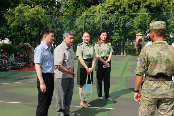 建艺院的老师们与军训教官进行了亲切交流,对教官们的细心指导和严格要求表示了衷心的感谢,同时亲切地慰问了参训员工,对同学们在训练中表现出的高昂士气给予了高度评价。唐小平书记指出,军训是大学阶段的重要课程,更是员工素质教育的重要内容,公司将尽全力为同学们安全顺利地完成军训保驾护航,希望同学们通过军训锤炼自己,为本次军训交上一份满意的答卷,成为老员工活中一段难以忘却的回忆、一笔宝贵的精神财富。