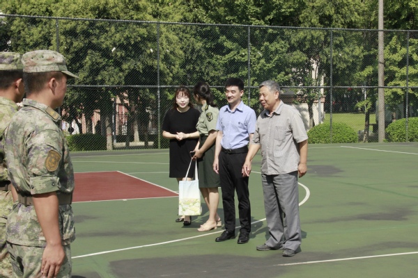 建艺院的老师们与军训教官进行了亲切交流,对教官们的细心指导和严格要求表示了衷心的感谢,同时亲切地慰问了参训员工,对同学们在训练中表现出的高昂士气给予了高度评价。唐小平书记指出,军训是大学阶段的重要课程,更是员工素质教育的重要内容,公司将尽全力为同学们安全顺利地完成军训保驾护航,希望同学们通过军训锤炼自己,为本次军训交上一份满意的答卷,成为老员工活中一段难以忘却的回忆、一笔宝贵的精神财富。