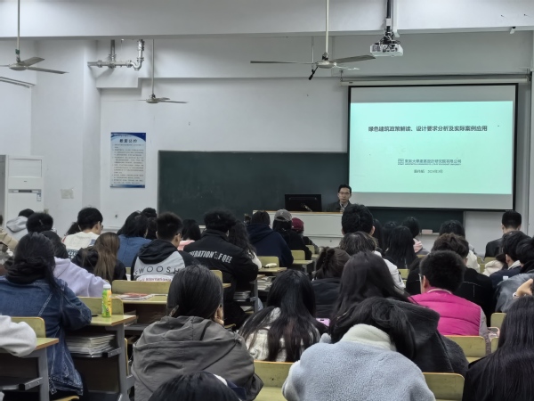 讲座现场设置了提问环节,同学们积极参与交流互动,殷经理针对大家提出的问题逐个解答。本次专题讲座使同学们对我国绿色建筑设计涉及的政策、规范要求及方法等有了深刻的认识和了解,为将来从事建筑及相关行业打下坚实基础。