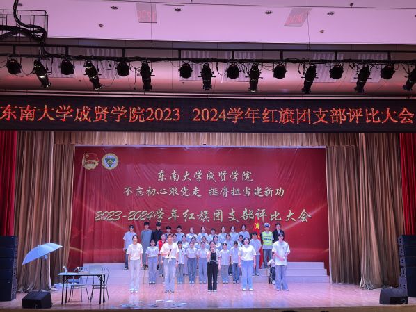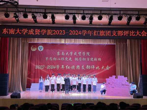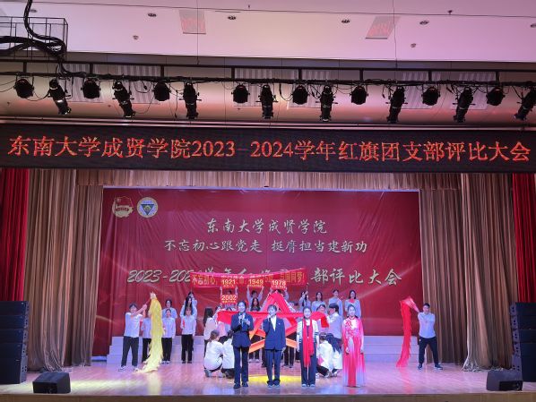 大会以歌声嘹亮的《光荣啊,中国共青团》团歌拉开序幕。本次评选大会分为支部风采展示和提问答辩两个环节。评委根据各支部前期递交的材料,从支部政治建设、组织基础、联系服务、作用发挥四个方面和老师指导参与情况进行综合打分。参评支部根据赛前抽签顺序依次展示支部风采,并在2分钟内回答评委的现场提问,展现了各支部的青春风采。经过激烈角逐,最终22风景园林1团支部荣获新学年“红旗团支部”称号,21机电2团支部和22电子商务1团支部荣获“活力团支部”荣誉称号。21建筑学1团支部程弋格同学作为上一学年的红旗团支部代表进行发言,分享了团支部建设好的经验和做法。最后,校团委书记潘明烽分别为获奖团支部颁奖,并为红旗团支部授旗。