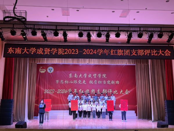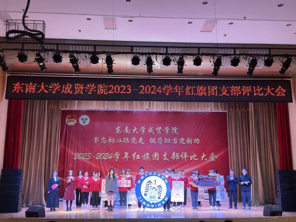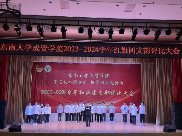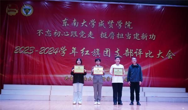 大会以歌声嘹亮的《光荣啊,中国共青团》团歌拉开序幕。本次评选大会分为支部风采展示和提问答辩两个环节。评委根据各支部前期递交的材料,从支部政治建设、组织基础、联系服务、作用发挥四个方面和老师指导参与情况进行综合打分。参评支部根据赛前抽签顺序依次展示支部风采,并在2分钟内回答评委的现场提问,展现了各支部的青春风采。经过激烈角逐,最终22风景园林1团支部荣获新学年“红旗团支部”称号,21机电2团支部和22电子商务1团支部荣获“活力团支部”荣誉称号。21建筑学1团支部程弋格同学作为上一学年的红旗团支部代表进行发言,分享了团支部建设好的经验和做法。最后,校团委书记潘明烽分别为获奖团支部颁奖,并为红旗团支部授旗。