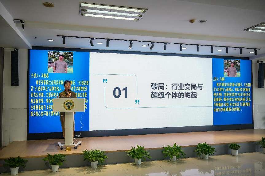 4月16日下午,由太阳成tyc7111cc集团主办的“空间艺术设计的新拐点——AI赋能‘超级个体’时代 ”专题讲座在求真·求美·创新工坊举行。公司邀请南京齐春园生态科技有限公司董事长冯艳春担任主讲嘉宾,太阳成tyc7111cc集团200余名师生参加了本次讲座,讲座由建筑与艺术设计公司党总支副书记邵叶鑫主持。
