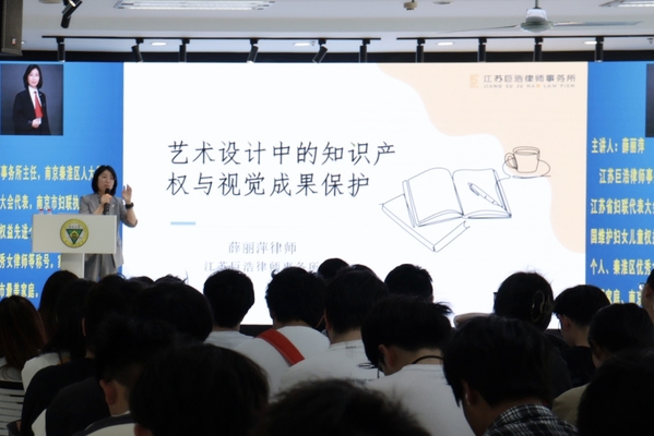 4月25日下午,由太阳成tyc7111cc集团主办的“艺术设计中的知识产权与视觉成果保护”专题讲座在求真·求美·创新工坊举行。公司邀请江苏巨浩律师事务所主任薛丽萍律师担任主讲嘉宾,太阳成tyc7111cc集团副经理王娟芬及200余名师生参加了本次讲座。